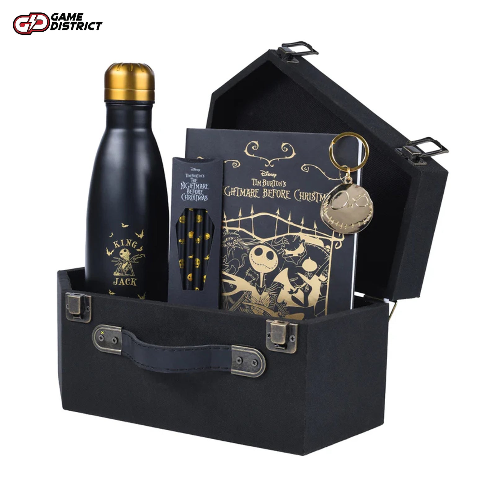 Step into the enchanting world of Halloween Town with the Nightmare Before Christmas Coffin Gift Set. This one-of-a-kind collection features a premium A5 notebook, a set of themed pencils, a Jack Skellington keyring, and a durable metal water bottle, all housed in a unique coffin-shaped storage trunk. Whether you're a fan of Tim Burton’s masterpiece or looking for the perfect spooky gift, this set delivers a magical experience.