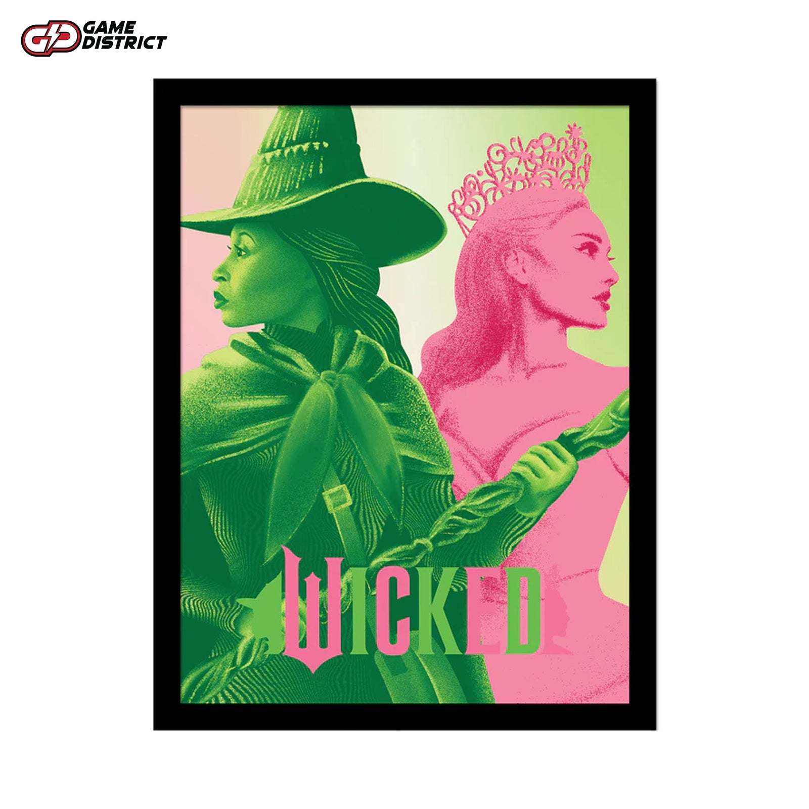 Iconic Artwork: Showcases a striking design inspired by Wicked, highlighting the captivating dynamic of Elphaba and Glinda.